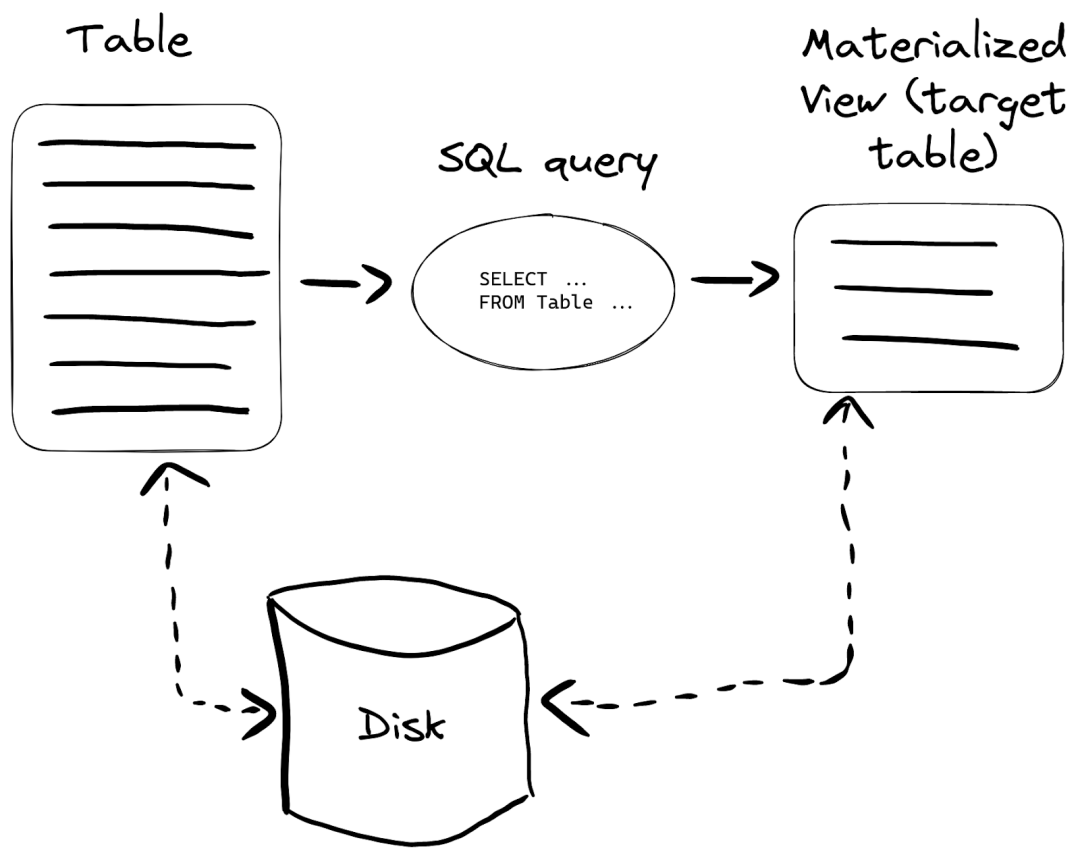 CREATE MATERIALIZED VIEW wikistat_monthly_mv TOwikistat_monthly ASSELECTtoDate(toStartOfMonth(time)) AS month,path,sum(hits) AS hitsFROM wikistatGROUP BYpath,month