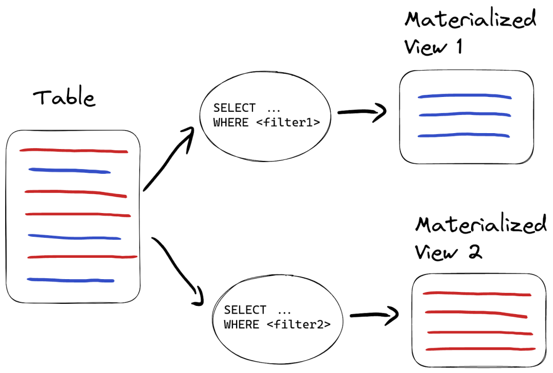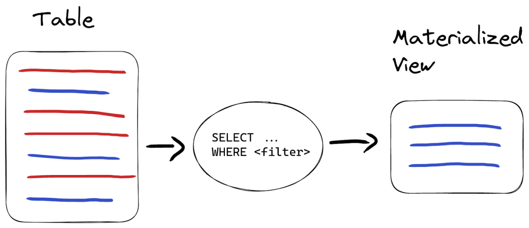 物化视图可以用于的另一个示例是基于某些条件将数据路由到不同的表: