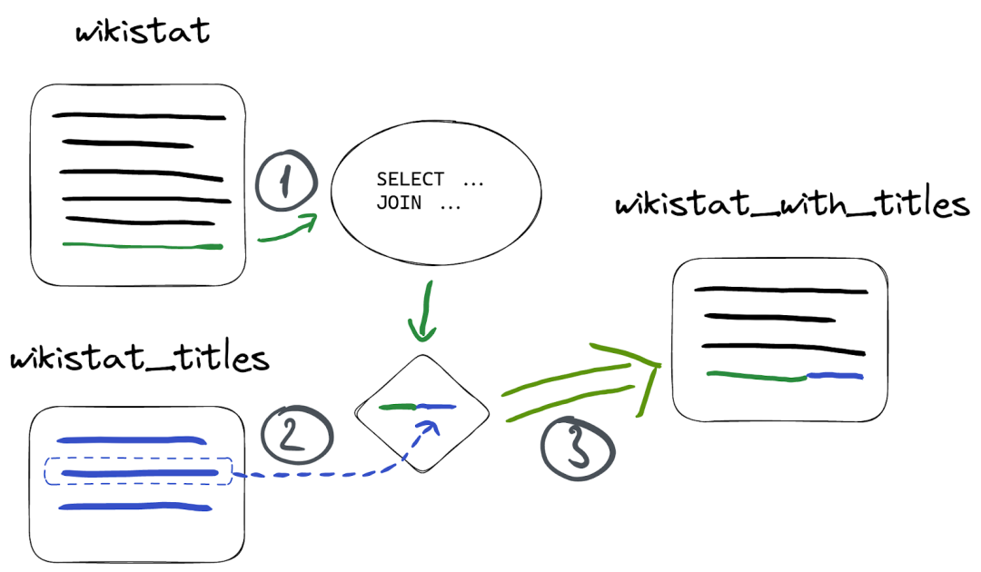 在我们的情况下, wikistat 是物化视图的源表,而 wikistat_titles 是我们要连接的表: