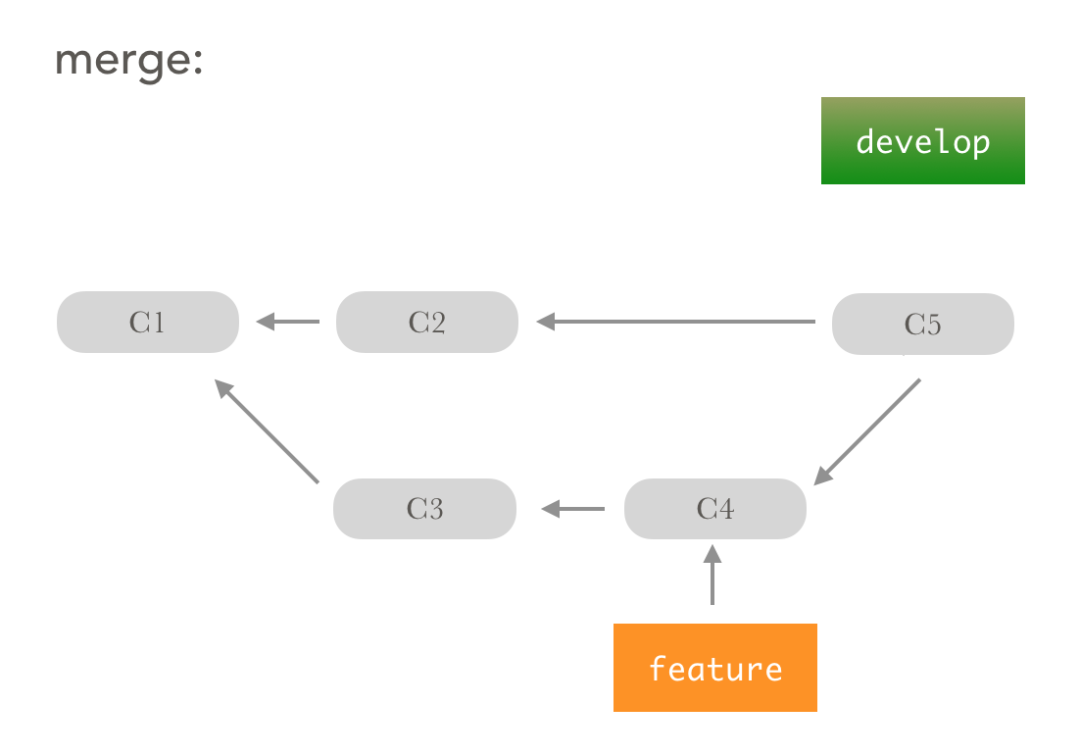 放在 develop 两个提交的后面。但 rebase 操作会所有变基的对象会直接整个排到基础提交的末端,不会让分支历史混乱。(关于 merge 的提交合并,你平时可以观察一下,是不是)