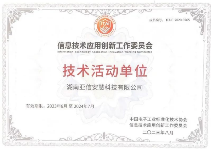 图:亚信安慧“信创工委会技术活动单位”荣誉证书