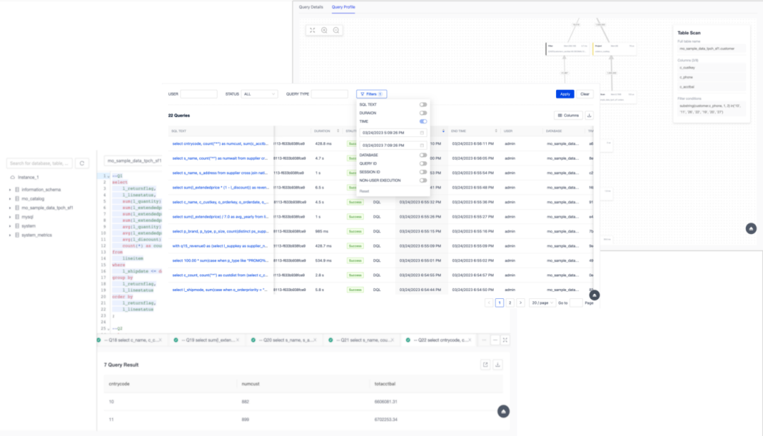 友好的在线 SQL 编辑器和互动 Tutorial,同时提供详尽的 SQL 分析能力,让用户快速上手数据库开发。
