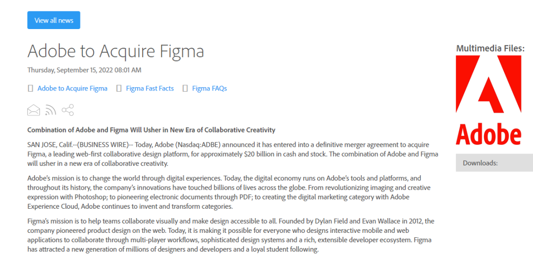 ▶ Adobe以200亿美元收购在线协作设计平台Figma。