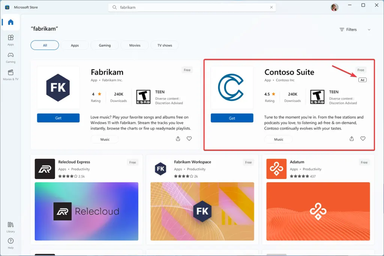 为了保持这种势头并让开发者满意,微软今天启动了Microsoft Store Ads试点计划。该计划于今年早些时候召开的Build大会上宣布,Microsoft Store Ads允许开发人员在装有Windows 10和11的设备上使用Microsoft Advertising向Microsoft Store客户推广他们的项目。