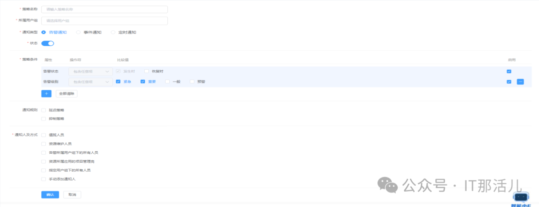 核对无误后即可配置告警发送策略。