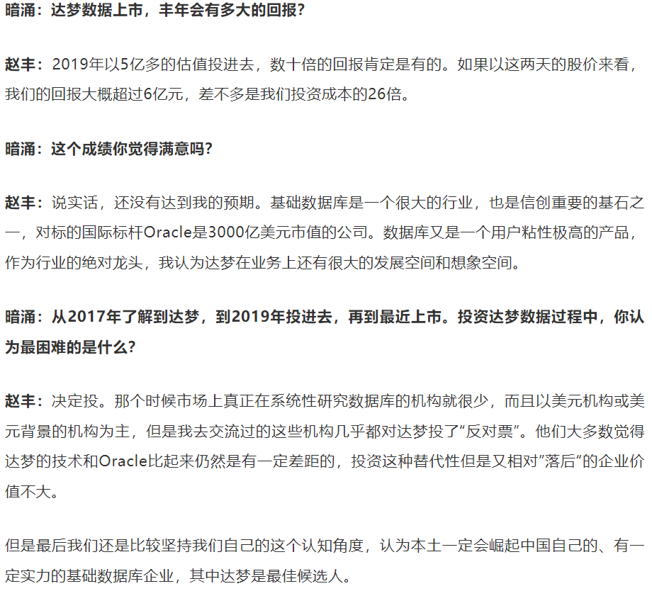 ❖ 丰年资本-赵丰:谈投资达梦数据库