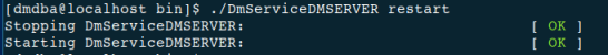 [dmdba@localhost bin]$ ./DmServiceDMSERVER restart