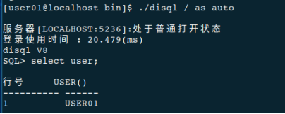 [user01@localhost bin]$ ./disql as autoSQL> select user();