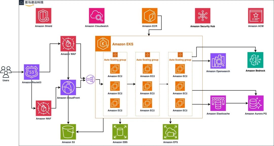 Dify 基于亚马逊云科技架构的示意图