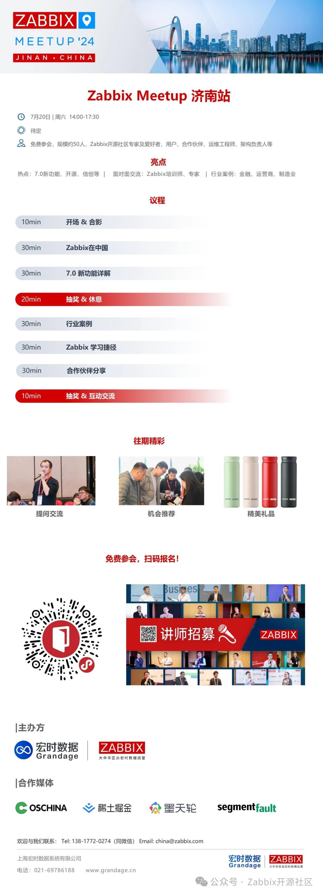 Zabbix 7.0 LTS 正式发布后的第一次线下交流会来啦,就在7月20日,就在泉城济南,立即扫码,预留席位。