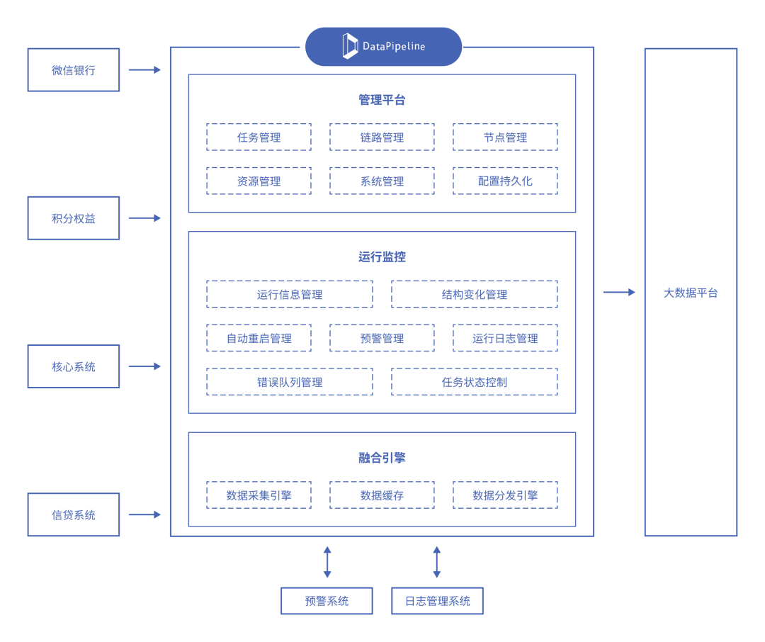 结合前述需求,DataPipeline企业级实时数据融合平台为该省级银行提供了强大的技术支持。平台兼容Oracle、OceanBase、Gbase等多种数据库管理技术,能够高效地实现数据的实时采集、处理与融合。特别是在数据的实时性和准确性方面,相较于以往显著提升,有效支持银行的业务创新和决策制定过程。