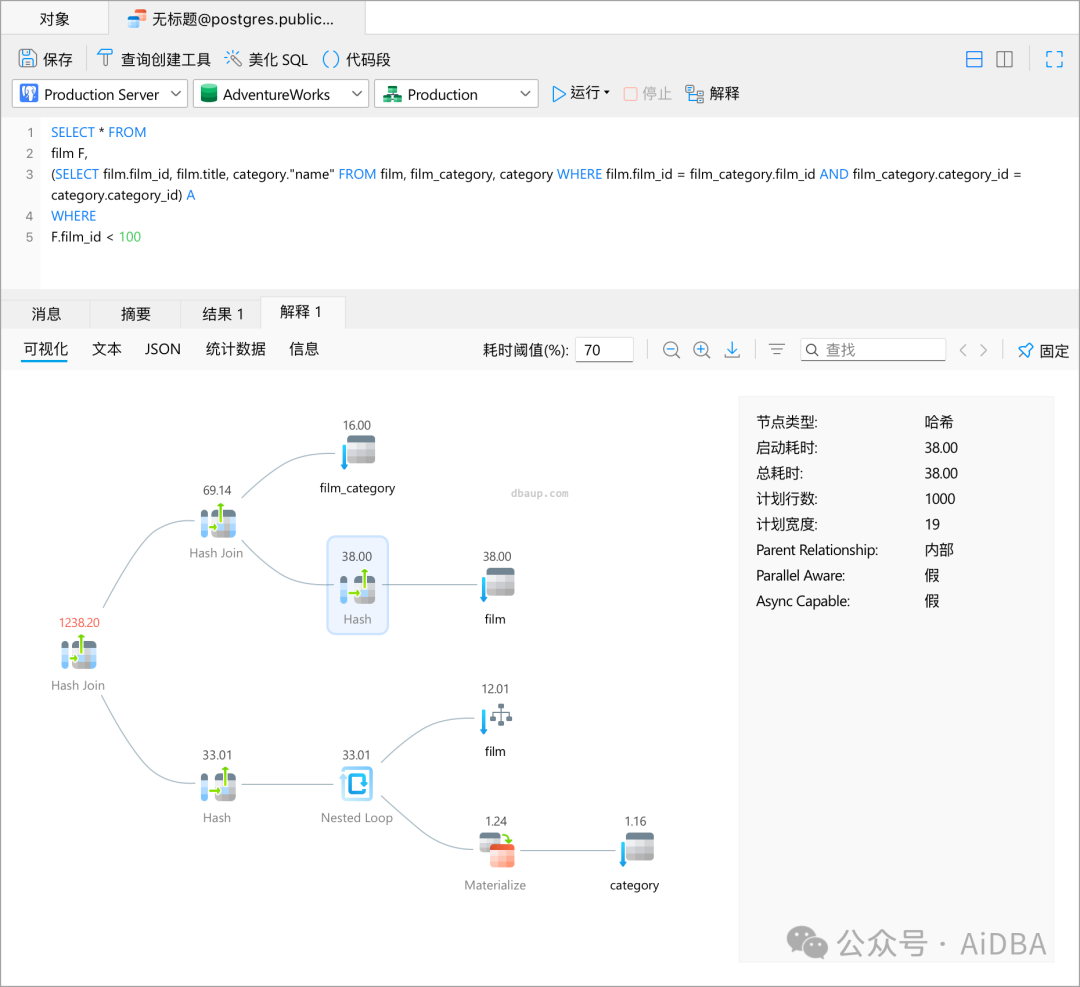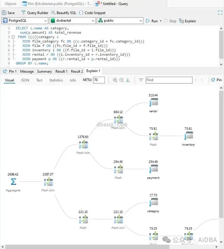 * 可视化查询解释目前适用于 MySQL、MariaDB 和 PostgreSQL 数据库,并计划在不久的将来支持更多服务器类型。