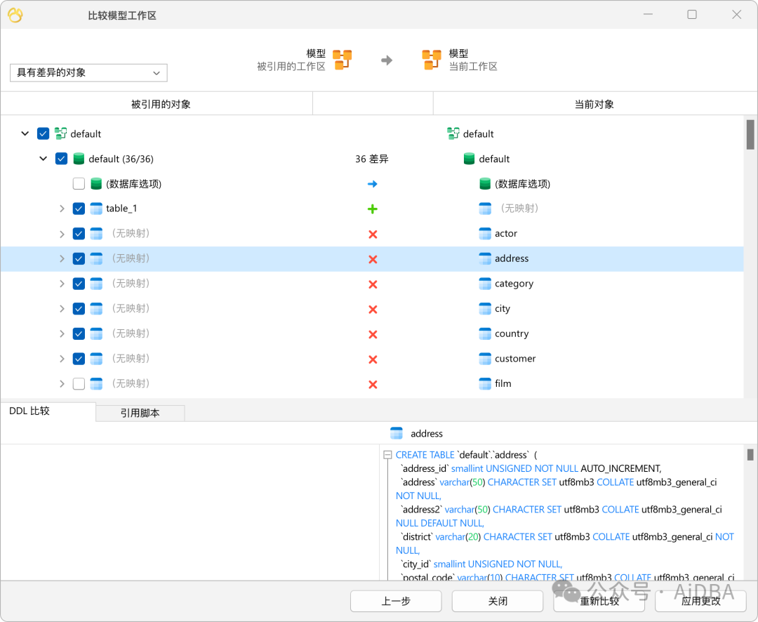 比较模型工作区并将数据库与模型同步,或者反向操作,自动地将其中一方的更改应用到另一方中。Navicat 确保数据库和模型之间的无缝集成,使它们保持最新且一致。