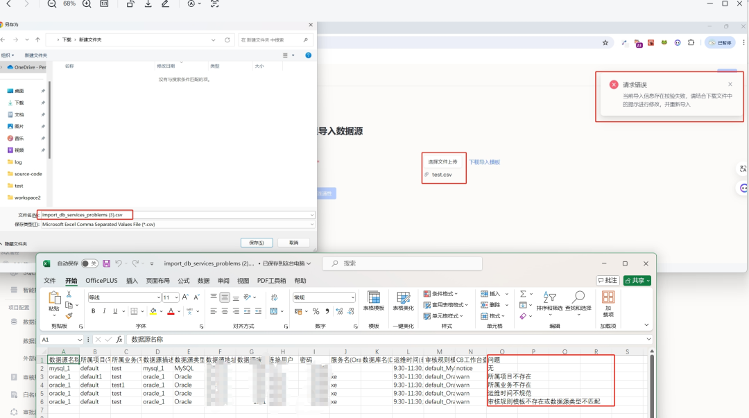 2. 选择上传文件,文件内容不符合标准会返回预检查结果文件。