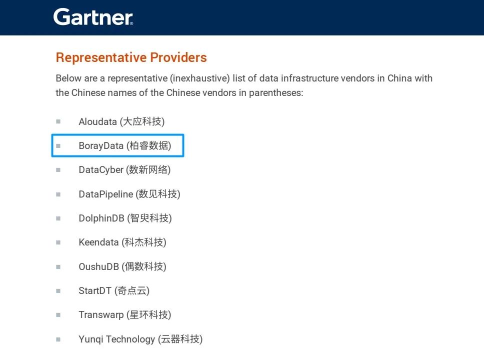 近日,全球权威IT与顾问咨询公司Gartner发布创新洞察报告《数据基础设施成为中国数据与分析生态系统的基石》(Innovation Insight:Data Infrastructure Evolves as the Foundation of D&A Ecosystem in China),深入剖析了中国数据与分析生态中数据基础设施的演变趋势。柏睿数据对企业GenAI商业价值的实现作用入选报告,并获评中国数据基础设施供应商代表厂商。