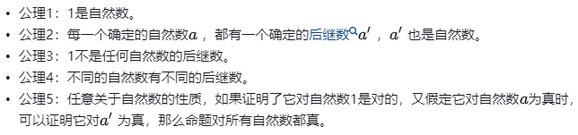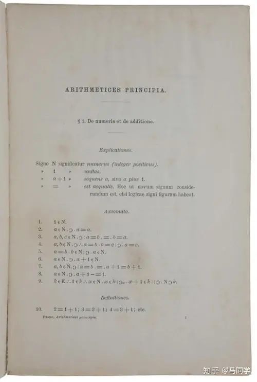 其中第一条、第三条和第五条公理,都不假思索地认定 1 是最小的自然数。将皮亚诺公理运用于当时的数学体系,严丝合缝,堪称数学大厦的一块基石。