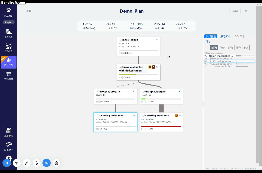 3. 交互式分析:通过执行时间、代价、行数的高亮展示,实现交互式分析。