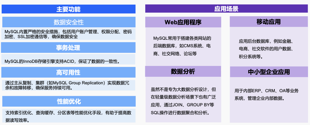 MySQL 是一个典型的关系型数据库,经过多年深耕发展,已成为业内应用最广泛的数据库。它提供了关系型数据库里典型的功能,如数据安全性、事务处理、高可用以及性能优化等。其稳定性经过多年的考验,不论中小型企业,还是传统金融行业,都有很多的应用场景。