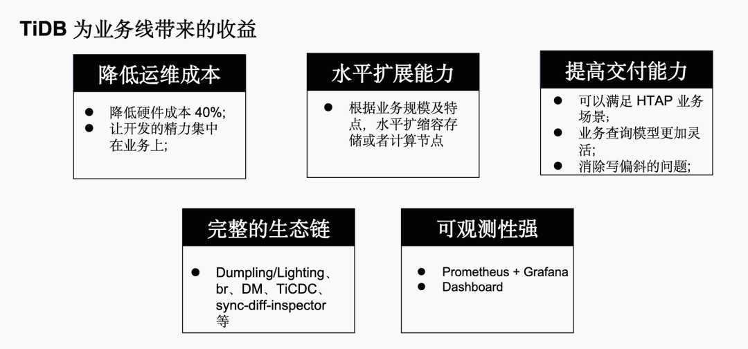 TiDB 的引入为我们商业化业务线带来了显著的收益: