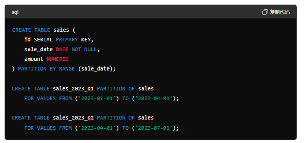 - 适当的分区策略:根据数据的特点选择适当的分区策略(范围、列表、哈希等)。例如,对于时间序列数据,范围分区是常见选择。