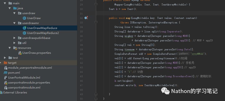 mapper类将获取的日志进行切分规整,然后给reduce类进行处理;
