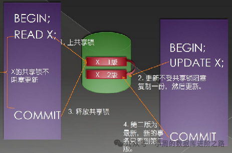 传统数据库使用锁机制来避免事务看到不一致的数据,但这会导致请求进入等候队列,甚至超时未处理。基于锁的机制被称为悲观机制,因为它是预防性的:读阻塞写,写阻塞读,导致并发性能较差。