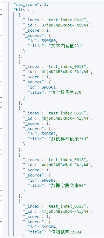 随机生成代码生成大量随机中文数据,并将其批量导入到Elasticsearch索引中。通过循环创建包含随机中文词汇和随机整数的文档,每批生成2000个文档就使用Elasticsearch的 bulk API进行批量导入,以提高导入效率,直到所有指定数量的文档全部导入完成。