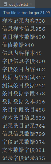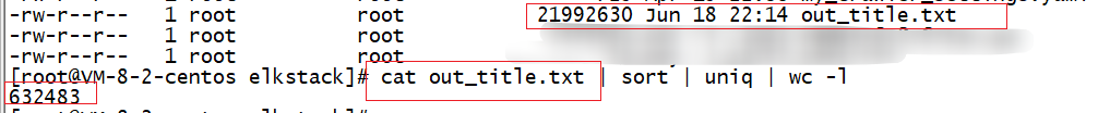 为了方便真实统计结果,我这边又借助 scroll 将 写入 Elasticsearch 的文本导出到 out_title.txt 文件。