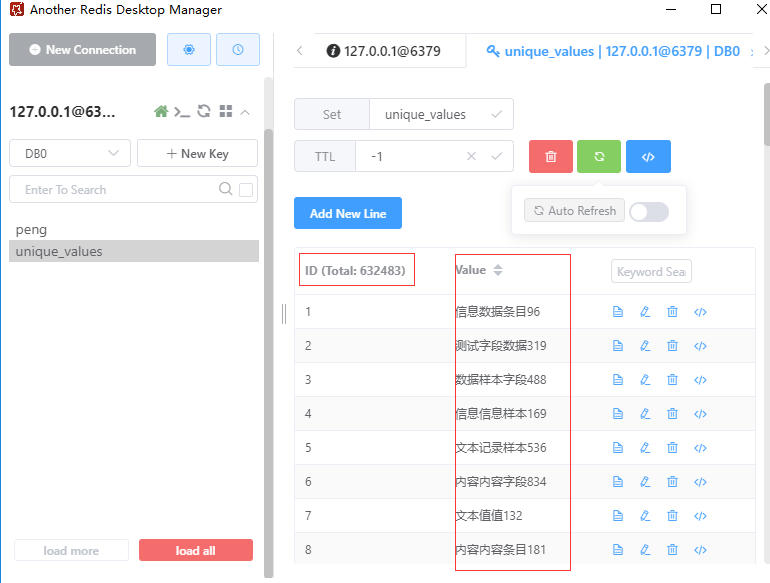 上述代码作用是获取Redis集合unique_values中的唯一元素数量。它利用了Redis集合的去重特性,通过scard方法返回集合中元素的总数。去重后结果如下: