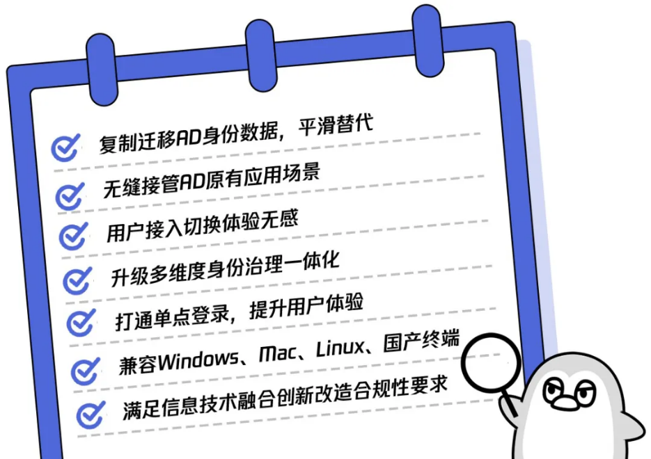 此外,基于双方产品的拓展能力,在信创改造过程中,也同时解决原有方案存在的安全与功能管理问题,升级国产化域控管理能力。