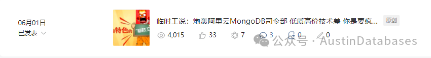 Austindatabases 公众号,主要围绕数据库技术(PostgreSQL, MySQL, Mongodb, Redis, SqlServer,PolarDB, Oceanbase 等)和职业发展,国外数据库大会音译,国外大型IT信息类网站文章翻译,等,希望能和您共同发展。