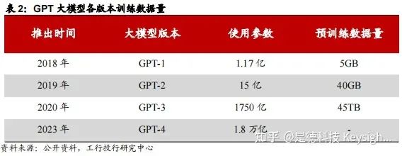 人工智能大模型训练数据量巨大,对算力尤其是智能算力需求庞大,且将在未来持续高增长,驱动全社会算力产业的快速发展。以GPT大模型为例,GPT-3模型参数约为1746亿个,训练一次需要的总算力为3640PF-days(即以1PFlops算力计算3640天[ 注:Flops即每秒执行的浮点运算次数。1E Flops=10^18Flops,约为5台天河2A超级计算机或50万颗主流服务器CPU或200万台主流笔记本的算力输出。1P Flops=10^15Flops]),而新一代GPT-4模型参数量将达到1.8万亿个,算力需求提高68倍。