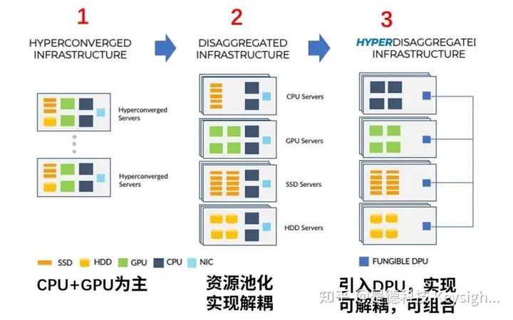 参考思科云计算白皮书(统计截止到 2020 年), 90%的流量(包括机架服务器内部数据流 量)发生在数据中心内部。应用产生了海量数据,数据传输与处理挑战很大。从数据中心网络拓扑看,传统数据中心采用三层架构,难以应对海量数据转发挑战。新 兴数据中心采用扁平叶脊两层架构,每台脊交换机可与所有叶交换机实现互连,提供多条传输 路径,提高传输效率。从核心器件性能看,传统数据中心性能与 CPU 相关。2015 年之后 CPU 性能以每年 3.5%增加,网络带宽以每年 45%增加,增速失配。新兴数据中心为解决该 问题,采用异构拓扑,多 CPU 级联,使用 GPU、DPU 等卸载 CPU 工作负载,提升性能。从 芯片架构看,CPU 遵循冯诺依曼架构,适合控制和通用计算。GPU 采用众核架构,用于图形/ 图像/视频处理、光线追踪、2D/3D 重建,可改进用于密集计算,以 Nvidia H100 GPU 为例, 可用于小型企业工作负载、百亿亿次级高性能计算、万亿级参数 AI模型,典型应用如下: