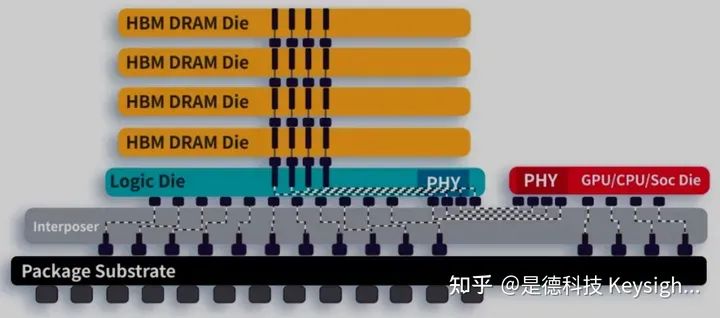 为了提升计算效率,减少数据传输的延时,英伟达A100在芯片封装内搭载了HBM内存,其具有传输距离近,速度带宽高,堆叠容量大的优势。