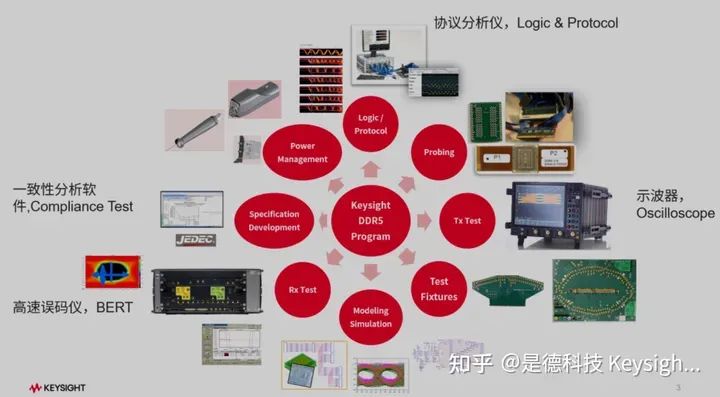 内存的发展趋势是速度更快、尺寸更小、功耗更低。为了保障内存的高性能和稳定性,在测试环节,需要进行各种功能、性能和可靠性等方面测试,其中需要用到高速误码仪,示波器,协议分析仪,一致性分析软件等软硬件组合,如下图: