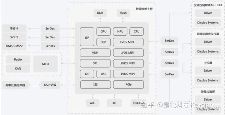 车载算力芯片与上述算力芯片应用场景不同,接口类型有差异,还会涉及高速 MIPI TRX接口、车载 Serdes 接口、车载以太网接口等。MIPI 接口包括 C-PHY、D-PHY,借助串化/解串套片连接多路摄像头及显示屏。MPHY 用于连接 UFS 芯片,实现非易失数据存储。