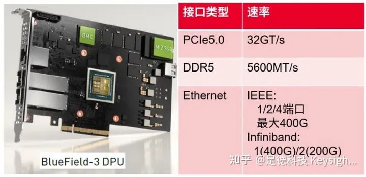 如下展示了基于 DPU 算力芯片实现的板卡。其支 持 PCIe5.0、DDR5、IEEE 802.3 以太网或 Infiniband 等标准。