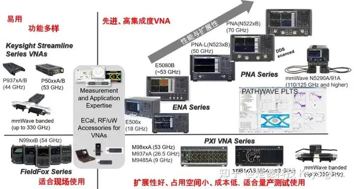 互连通道物理层测试需要矢量网络分析仪。网分包 括 Streamline 网分、手持网分、四端口和多端口网分。搭配 PLTS 软件可进行信道包括 PCB 走线、连接器和线缆等 S 参数(比如 PCIE4.0/5.0 CEM TRX 测试的信道插损 IL)、特性阻抗 及以太网的信道 COM 参数表征。用户可根据测试参数、测试频率选择合适的网络分析仪,还 可搭配应用软件,实现 TDR/频谱/相噪等测试。