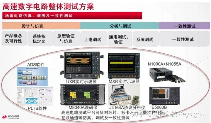 是德科技可以在高性能算力芯片设计仿真阶段提供参数提取与仿真软件,在芯片验证阶段提供包含实时示波器、误码仪、网络分析仪、协议分析仪等整体收发及信道的测试方案,协助算力芯片调试与一致性测试,加快产品的上市时间。