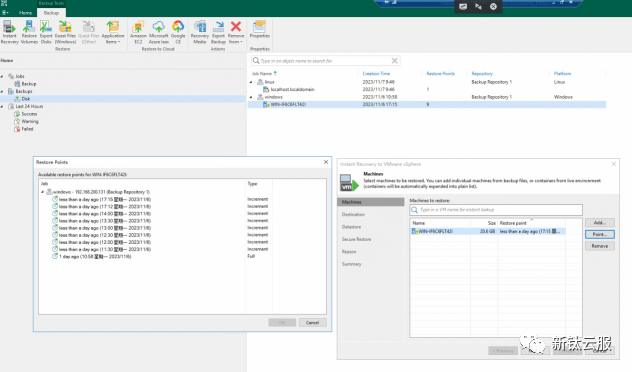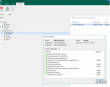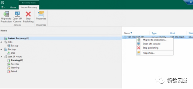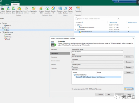 · 恢复到 VMware,选择Instant recovery即时恢复,先临时恢复可以进行测试和验证,再正式迁移