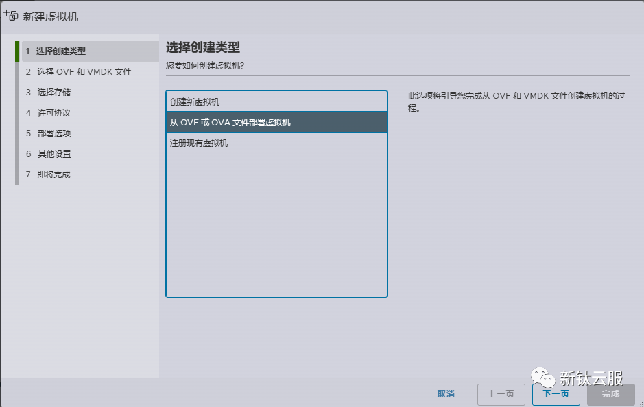 ESXi安装好以后,选择新建虚拟机,然后选择从OVF或OVA文件部署虚拟机。