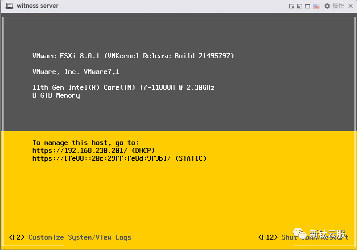 见证服务器也要安装到ESXi上,ESXi配置如下。