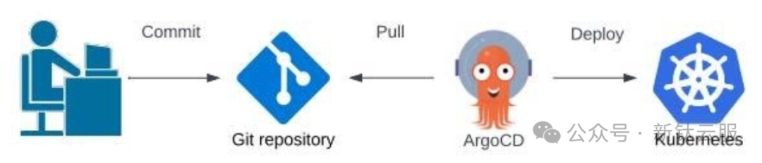 在更高层面上,Argo CD 部署过程按以下方式工作: