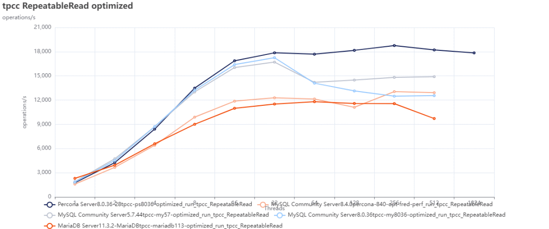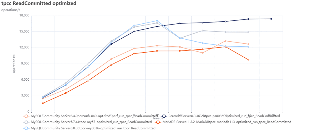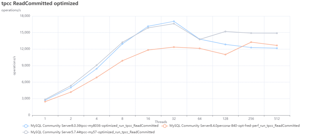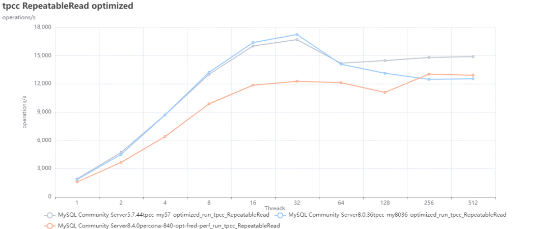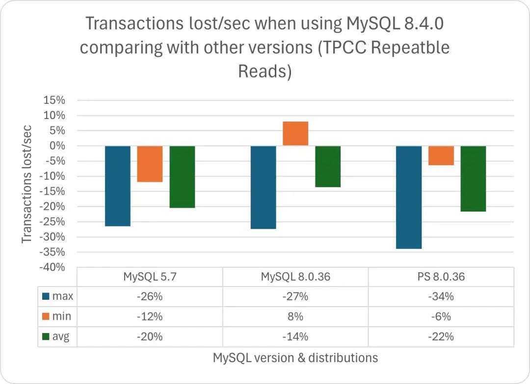 TPC-C,RR隔离等级,MySQL 8.4 的性能折损: