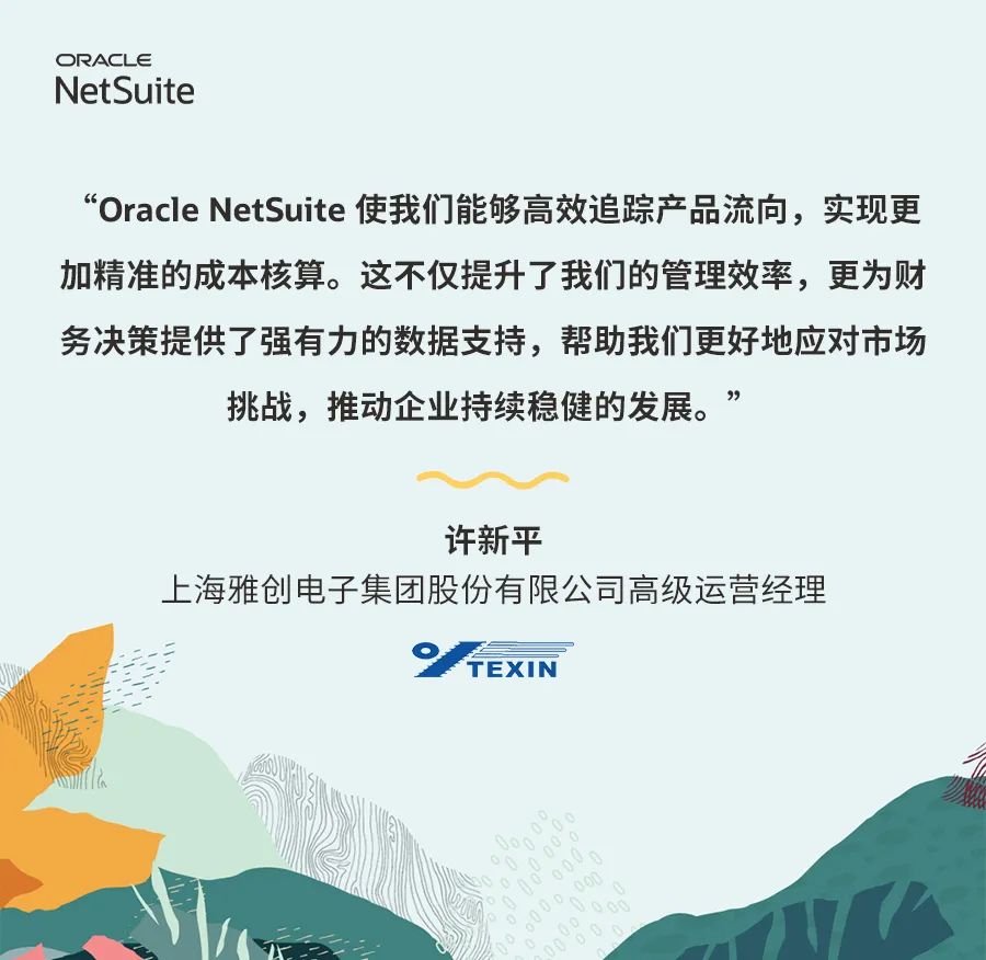 Oracle NetSuite 凭借其高度集成、灵活可配置的特点,以及丰富的成功案例,赢得了雅创的选择和认可。Oracle NetSuite 成功整合了雅创的 ERP 系统业务单据,提高了工作效率和准确性。同时,精细化的数据管理帮助雅创实现了对批次的追踪和更精准的成本核算。此外,Oracle NetSuite 还根据雅创的财务合并需求量身定制了集团财务合并方案,为企业的财务数字化升级提供了有力支持。