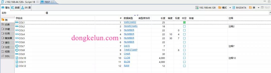 COMMENT ON COLUMN TEST.COL10 IS '注释10' ;