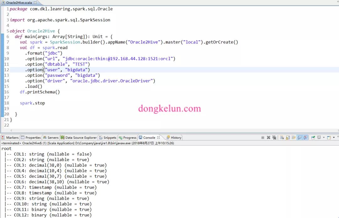 和上一篇文章Spark通过修改DataFrame的schema给表字段添加注释一样,通过Spark将关系型数据库(以Oracle为例)的表同步的Hive,这里讲的只是同步历史数据,不包括同步增量数据。