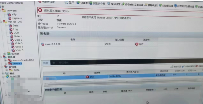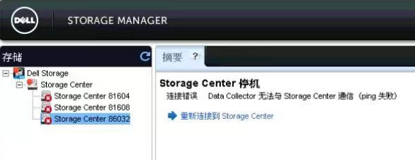 戴尔服务器Storage Center登录成功后无法访问数据,划分的存储空间全部报错,Storage Center停机,连接错误,Data Collector无法与Storage Center通信: