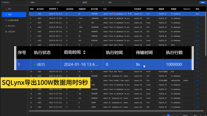 - 性能卓越:其大数据量处理能力令人印象深刻,导出1300万数据仅需74秒,远超同类产品。