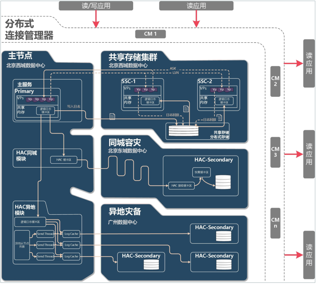 支持同机房共享存储(SSC)、主备高可用灾备(HAC)能力、异地灾备高可用(RHAC)能力。
